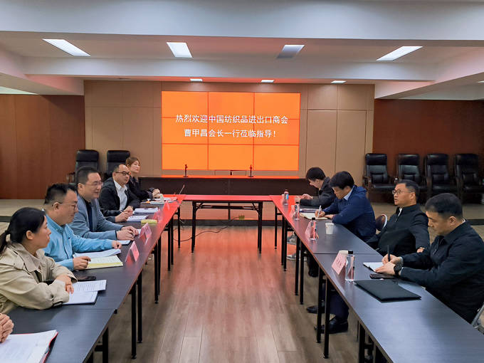 312日,中國紡織商會會長曹甲昌以及會員部主任代克勝、市場部副主任張瀚濤、信息部賈寧一行4人到我司調研并召開座談。