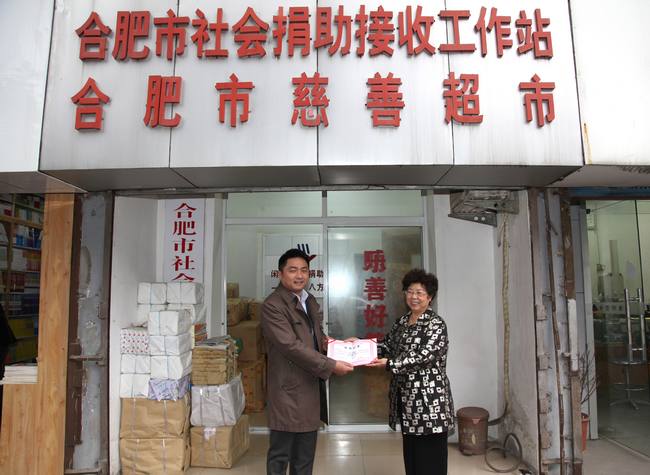 ?2015年11月16日,安徽工藝貿易進出口有限公司副總經理趙克勇一行,將二十余箱價值數萬元的毛毯等生活物資,無償捐獻給合肥市慈善協會。