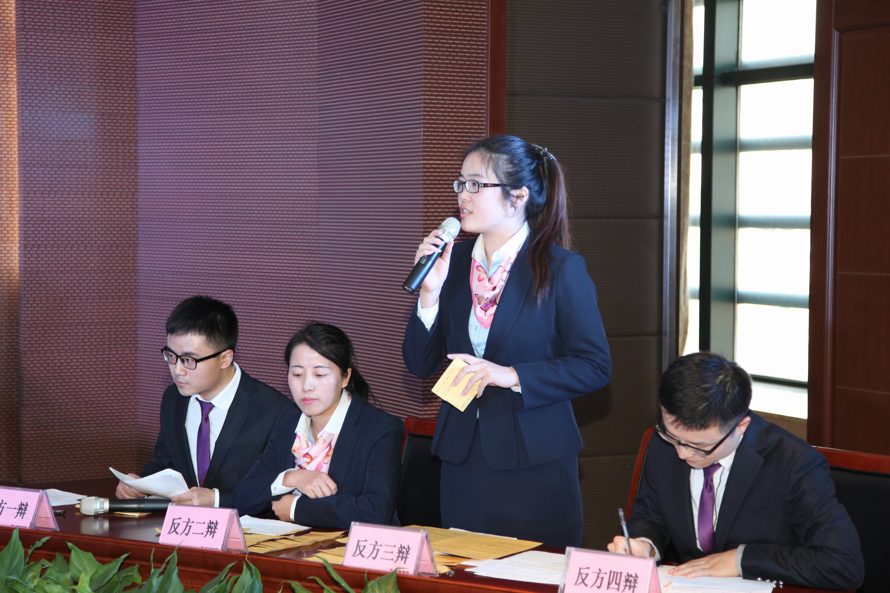 ? ? 預賽我司選手對陣的是輕工公司。輕工公司作為傳統強隊,他們的重視程度可想而知,單從啦啦隊的人數上看,就具有壓倒性優勢。兩家兄弟公司圍繞“上層和下屬需要保持距離才能樹立權威VS上層和下屬不需要保持距離才能樹立權威”這個辯題,展開了激烈的辯論。嵇博睿開篇立論有理有據,條理清晰,如此沉著的表現給隊友們開了一個好頭。到了攻辯環節,對方二、三辯分別對汪雪琴、徐曉倩提出一個又一個刁鉆的問題。她們從容不迫、淡定迎戰,用平和的語氣給對方拋出問題,雖然語速不快,但一字一句都錯落有致,擲地有聲。隨后的自由辯論更是緊張激烈,精彩紛呈。雙方辯友反應機敏、幽默風趣的表現引來現場觀眾和評委們的陣陣掌聲和笑聲。最后,范有春進行了一段富有激情而又不失風度的總結陳詞。陳詞演說清晰流暢,說理透徹,用語得體,將現場氣氛推向了高潮。我們的選手雖然是客場作戰,但并沒有被主場強大的氣勢所壓倒,他們能夠結合國貿集團的實際進行提問和回答,如此接地氣的表現受到了集團范總和副總經理李明輝的高度評價。他們沉著冷靜、敢打敢拼的表現最終贏得了該場比賽的勝利,進入半決賽。