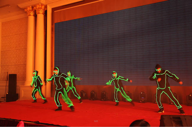 ? ? 接下來(lái)的新春聯(lián)歡在短劇《回家過(guò)年》中拉開(kāi)序幕,舞蹈、歌曲、小品、話劇展現(xiàn)了工藝人多姿多彩的另一面。舞蹈《熒光舞》、《告白氣球+SEVE》讓人看到年輕人的青春與活力;歌曲《風(fēng)雨無(wú)阻》表現(xiàn)了工藝人不怕艱難困苦、風(fēng)雨無(wú)阻、勇往直前的精神;手語(yǔ)歌《最美的未來(lái)》展現(xiàn)了公司熱衷于公益事業(yè)的社會(huì)擔(dān)當(dāng)。最讓人驚喜的是《奇葩說(shuō)三道四大辯論》中各路“奇葩”犀利、幽默的語(yǔ)言,以及穿插其中的歌舞表演,贏得臺(tái)下觀眾陣陣歡笑與掌聲。最后,全體員工走上舞臺(tái)一起合唱《紅日》,將晚會(huì)的氣氛推到最高點(diǎn)。